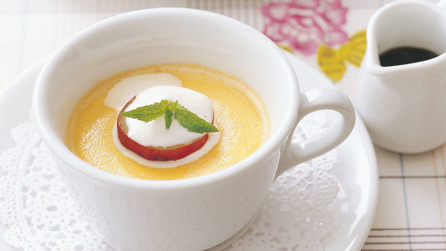 スイートポテトの生地でつくるプリン。おいもの自然な甘みと香りがフワッと広がります。