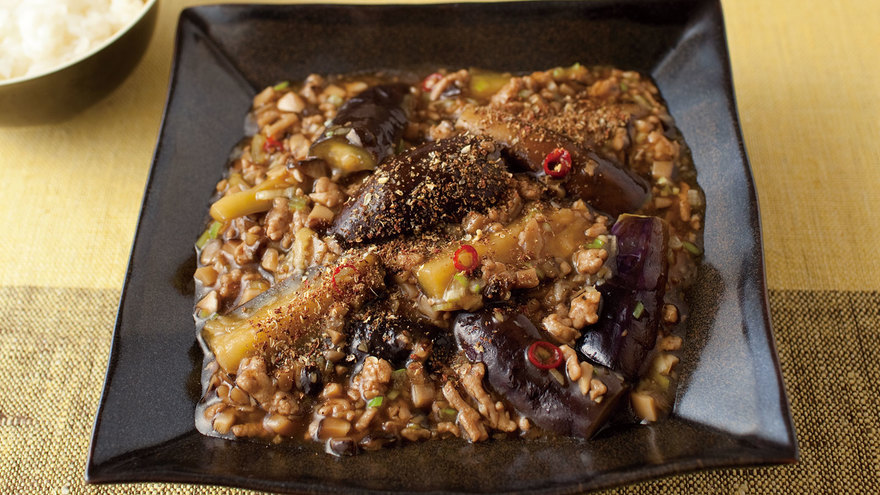 マーボーなすなどに使うさんしょうは、できれば中国産の花椒(ホワジャオ)を。粉状の花椒粉(ホワジャオフェン)がなければ花椒をフライパンでからいりし、すり鉢ですり、ざるでこして仕上げにひとふり。日本産の粉ざんしょうとは違う舌がしびれるような辛さが、味わいを本格的にします。