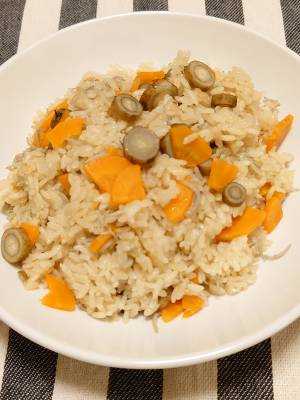 炊飯器でつくる簡単ピラフ。冷凍ごぼう・にんじんミックスは凍ったまま加えてOKです。