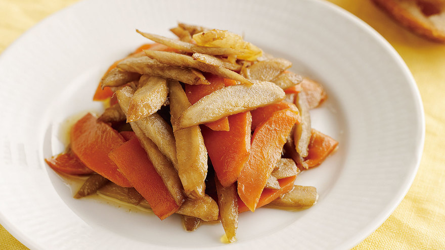 にんにくの香りとアンチョビのうまみが移った油に、冷凍ごぼう・にんじんミックス②を加える。