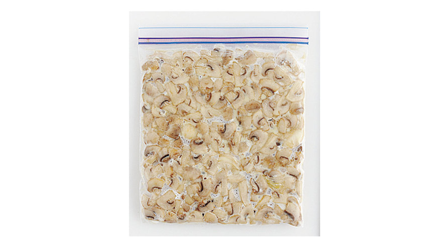 マッシュルームは変色しやすいので、火を通してから冷凍します。さまざまな洋風料理に使えて便利です。