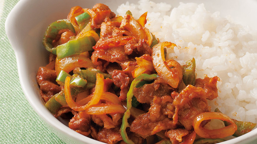 ご飯,ピーマン,たまねぎ