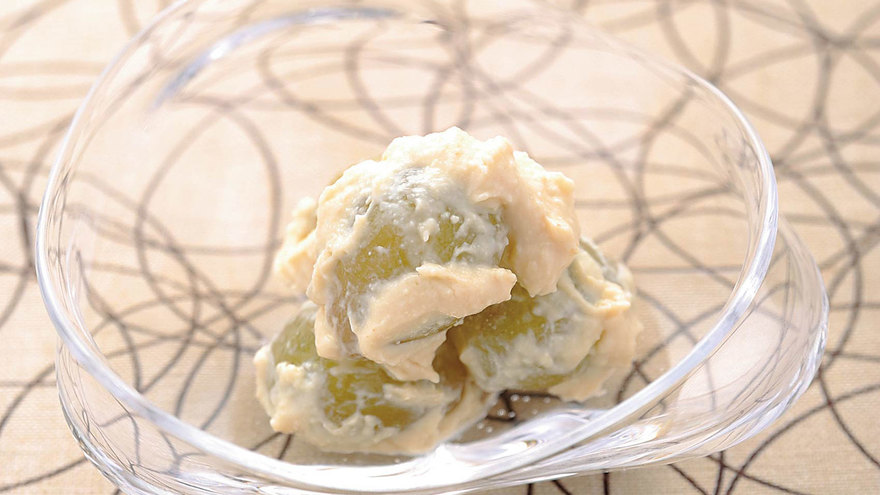 果物とも相性抜群な上品な白あえは、ごまのふうみがポイント。ぶどう以外に、柿やいちじくなどでも。