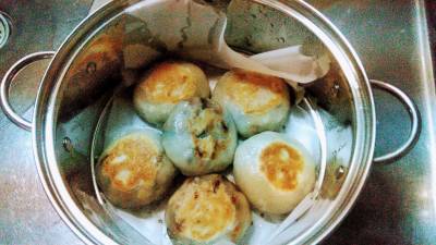 蒸気の上がった蒸し器に入れ(おやきが重なってもよい)、中火で10分間蒸す。