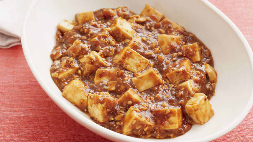 ひき肉の代わりに大豆を使ったヘルシーなマーボー豆腐。刻んだ大豆に下味をつければ、肉を食べているような満足感!