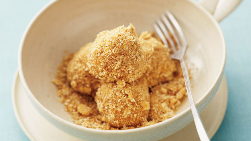 1のおから大さじ6、砂糖大さじ2、きな粉をバットなどに混ぜ合わせる。