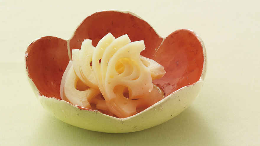甘辛いしょうゆ味の煮物や焼き物を食べたら、酢の物でさっぱりと!れんこんの切り目から味がよくしみ、ずらして盛れば見た目もきれいですよ。