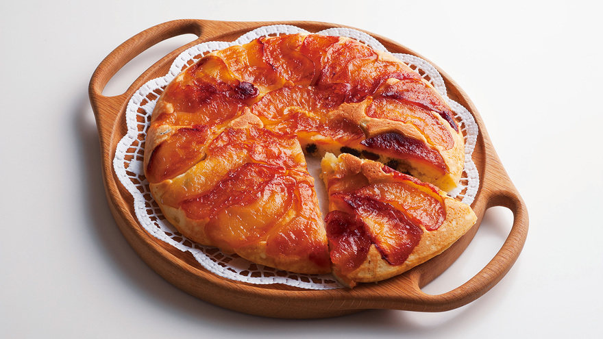 カラメルのほろ苦さをまとったりんごと、シナモン風味の生地がベストマッチ!きれいに並んだりんごに拍手喝采間違いなし。蒸し焼きにするので、片面焼きでOKですよ。