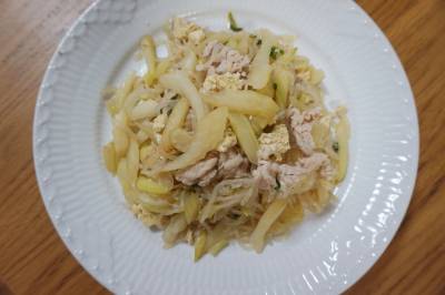 豚こまとセロリのいり豆腐炒め
