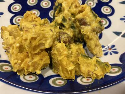 ご飯に細切りのザーサイ、みじん切りのきゅうりを混ぜて詰め、鮭たまとチャイニーズきんぴらを入れる。空いたところに塩ゆでのスナップえんどうを詰める。ご飯の上に豚肉のサッと焼きの肉とねぎ、しょうがをのせ、うま辛だれをかける。