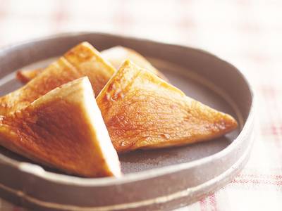 フライパンを温めてバターを中火で溶かし、はんぺんを入れて30~40秒間焼き、裏返してさらに30~40秒間焼く。しょうゆを加え、サッとからめる。