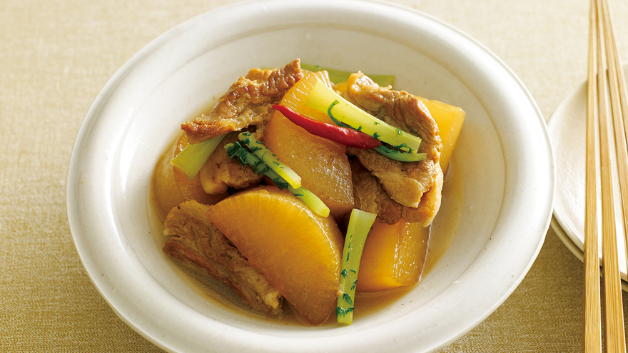 厚めの焼き肉用豚肉を使って食べごたえアップ!大根が柔らかくなってから調味料を加えると、味がよくしみ込みます。