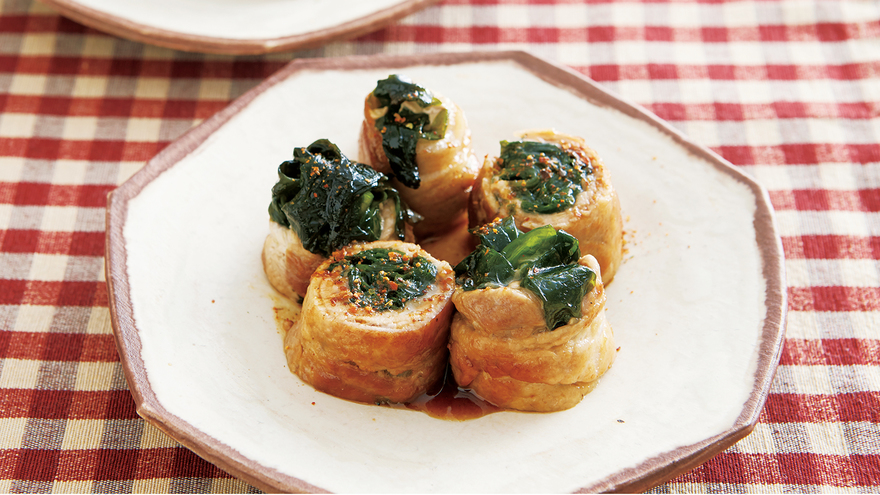 豚肉でわかめを巻き、照り焼きに。甘辛味のたれが、わかめによくなじみます。火の通りが早い時短おかずです。