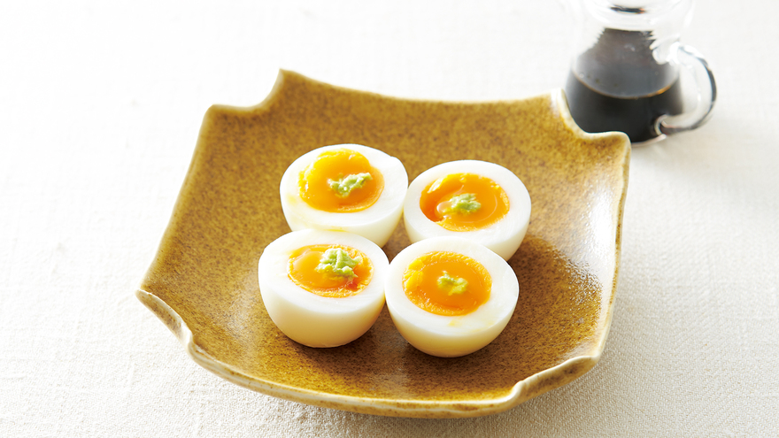 トロリとした黄身を、わさびとしょうゆで味わいましょう。酒の肴(さかな)にもぴったりで、おつな一品。卵の堅さは好みで加減しましょう。