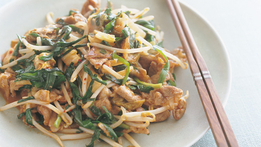 キムチの絞り汁も調味料にプラスして、風味と辛みをアップ。