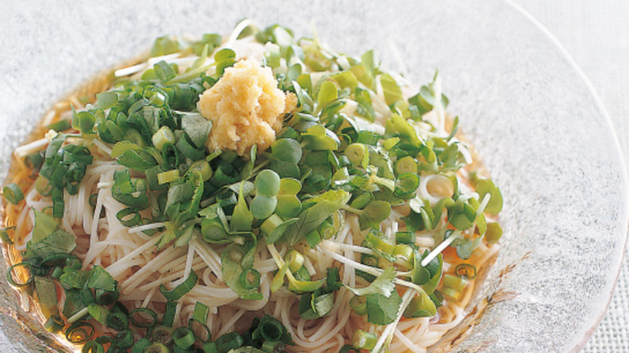 そうめんにたっぷり薬味をのせて、栄養バランスアップ!しょうがの香りが口いっぱいに広がります。