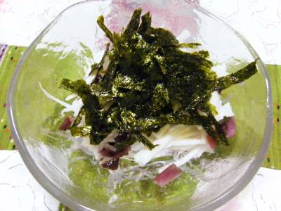 ボウルに1を入れてあえ、器に盛り、刻みのりを散らす。