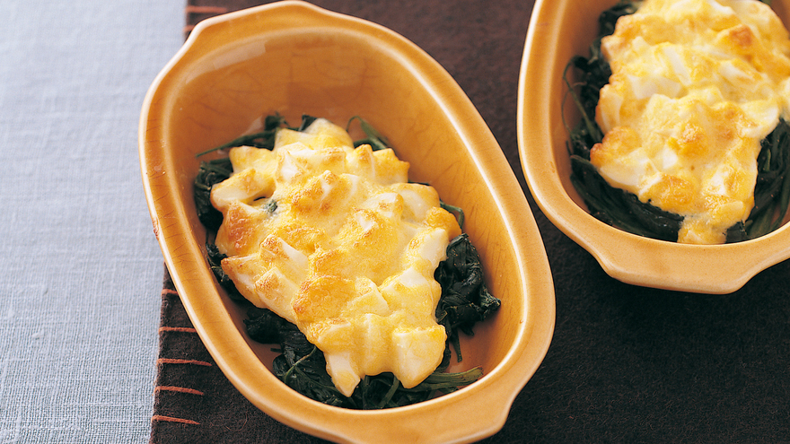 相性抜群なゆで卵とマヨネーズのソースでつくります。こんがり焼いて、アツアツを召し上がれ!