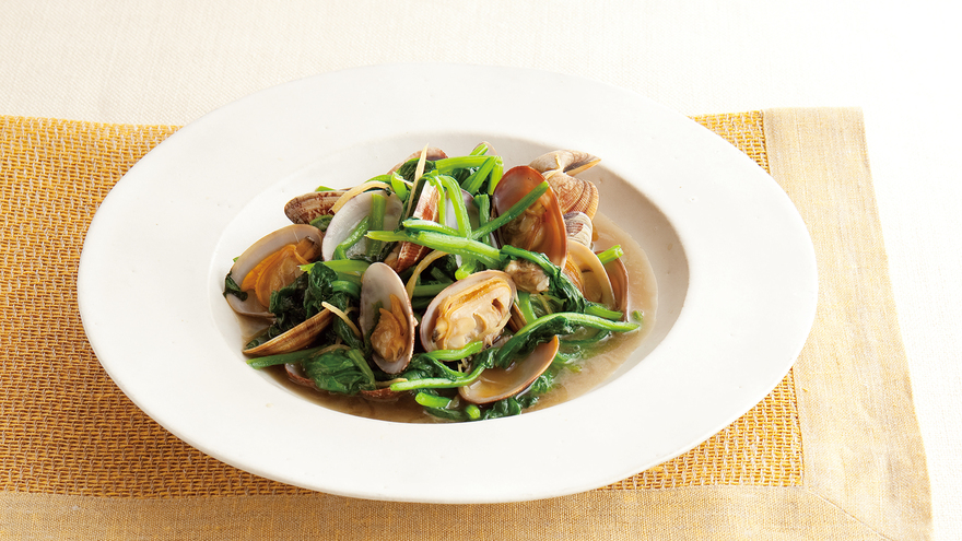市販のめんつゆで味つけするから、手間いらず簡単です。あさりの滋味が、ほうれんそうにも。