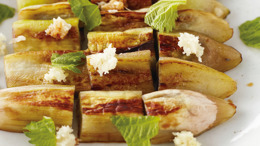 皮をむき、フライパンでじっくり、こんがり焼き上げます。網焼きとはひと味違った味わい!