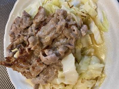 フライパンにサラダ油大さじ1/2を熱し、1のキャベツを中火で炒める。しんなりしたら、塩、こしょうをふって混ぜ、器に広げる。フライパンにサラダ油大さじ1/2を熱し、1の豚肉を入れて中火で両面をこんがり焼いて火を通し、キャベツの上に盛る。