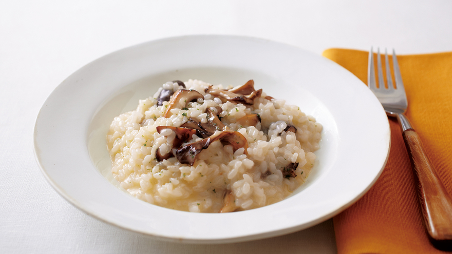 リゾットは、米を炒めてからスープで煮込むイタリア料理。熱くしたスープをつぎ足しながら米にたっぷりと味をしみ込ませ、少し歯ごたえが残る程度に仕上げる。焦げつかないよう、鍋から目を離さないように。