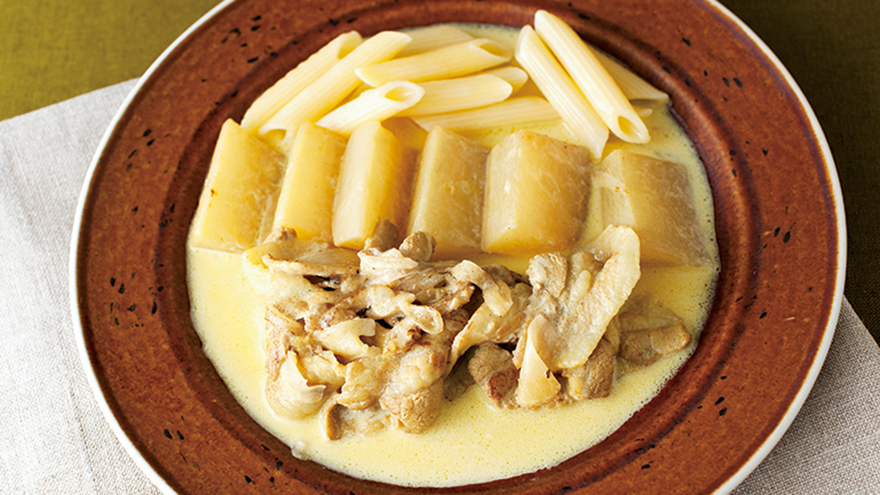 豚バラ肉と生クリームのコクを、カレー粉で引き締めます。大ぶりに切った大根の歯応えもおいしさのポイント。
