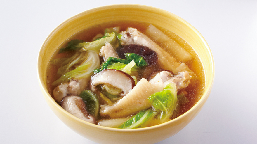 鶏手羽から出た濃厚なうまみが、柔らかな白菜にしみ込みます。しいたけのなめらかな食感も加わって大満足の一杯です。