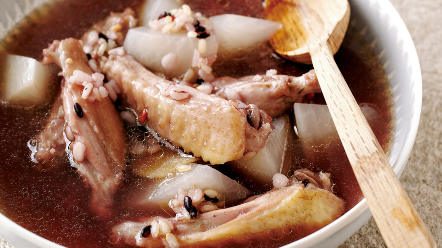 鍋に1の手羽先と先端、水カップ4、【A】を入れて中火にかける。煮立ったらアクを取り除き、雑穀ミックス、大根を加える。再び煮立ったら弱火にし、大根が柔らかくなるまで20~25分間煮て、こしょうをふる。