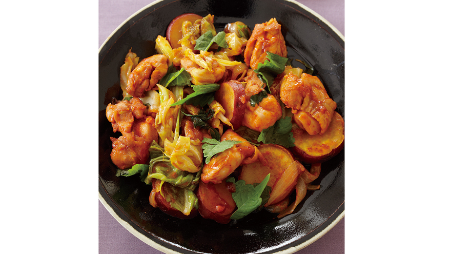 鶏肉をコチュジャンベースのたれで焼く料理を意味するタッカルビ。今回は、使いやすいもも肉で鶏肉のうまみを実感!