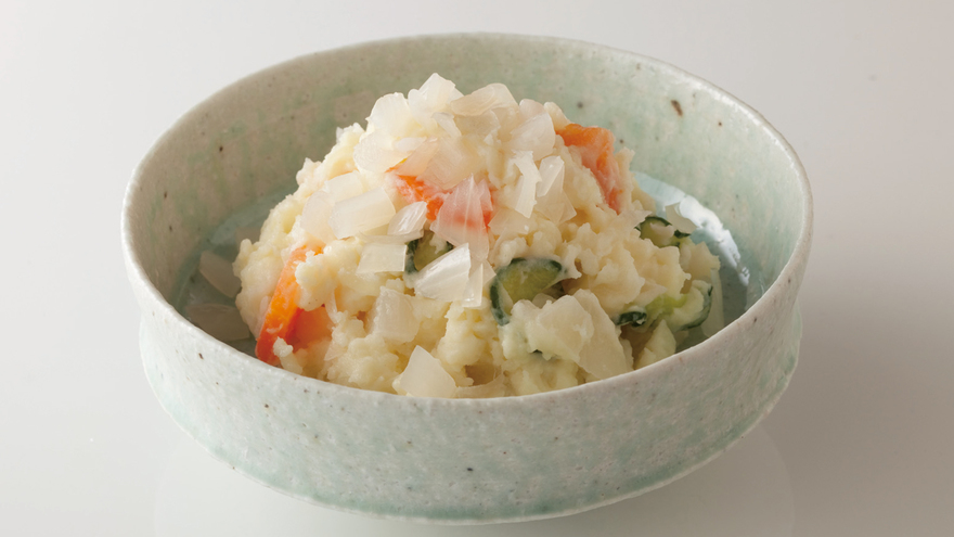 いつものポテサラを、らっきょうのアクセントでさっぱり爽やかに仕上げました。歯ごたえも楽しい一品です。