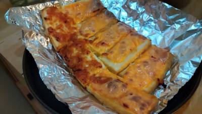 オーブントースターに入れて6~7分間、チーズが溶けて表面に焼き色がつくまで焼く。
