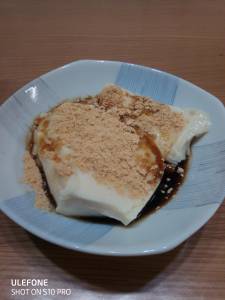 小鍋に豆乳ときび糖を入れて、中火にかける。沸騰直前に火から下ろし、1を加えてよく混ぜて溶かす。