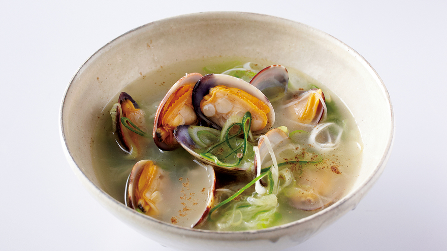 あさりとねぎは相性ばっちり。ねぎは半量をよく炒めて味のベースにし、残りは仕上げに加えて食感と香りを楽しみます。