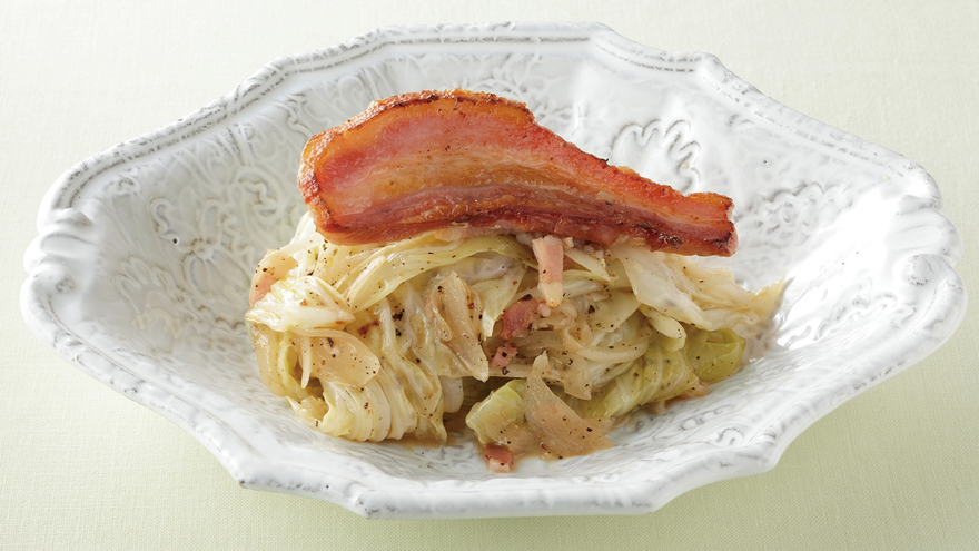 フランスのキャベツの酢漬け「シュークルート」を春キャベツの柔らかさを生かしてサラダ風にアレンジします。サッと炒めるのがポイント。
