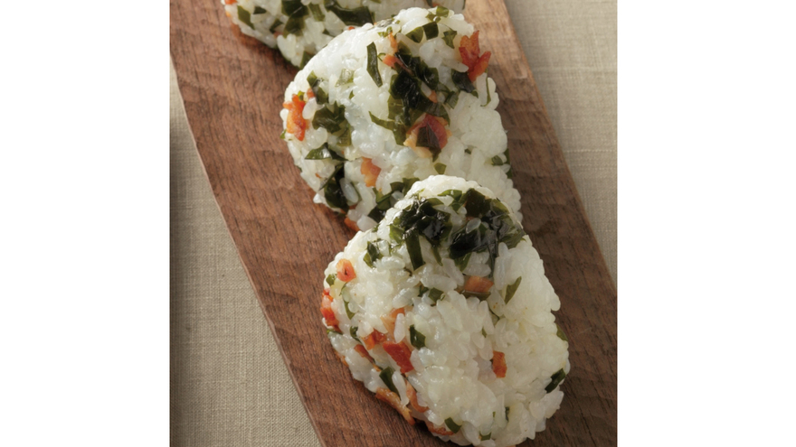 海の香りいっぱいのわかめと、ベーコンの塩けがよく合います。