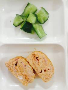 1回分を巻いたら卵焼き器の向こう側へ寄せ、全体にサラダ油を薄く塗り、次の卵液を焼けた卵の下にも流し入れるようにするときれいに巻ける。
