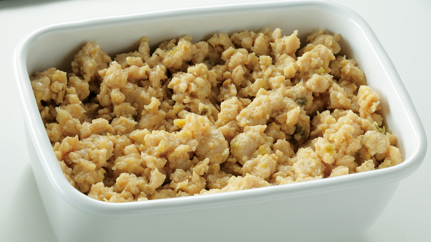 丼やラーメン、オムレツの具にも重宝するストックおかず。しっとりとして、肉の食感が楽しめるそぼろです。