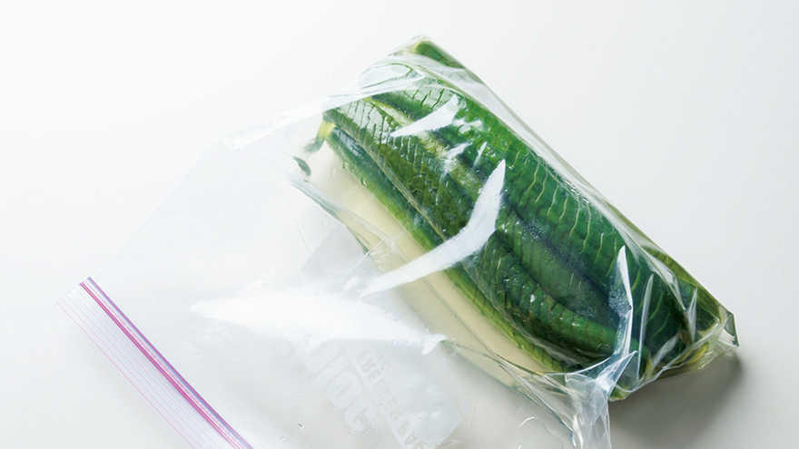 きゅうりは洗って水けをよく拭き取り、両端を切り落とす。