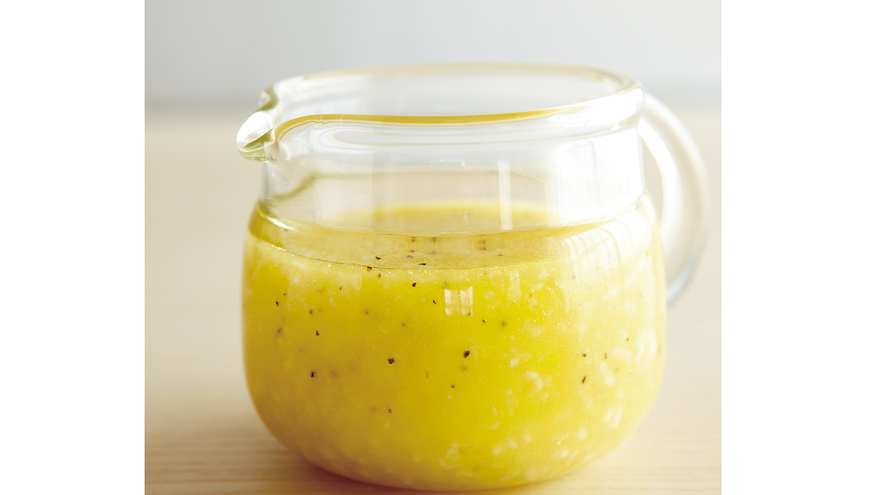 甘酒の甘みと食感を生かしたシンプルなドレッシング。まろやかな酸味で、甘酒のうまみがフワッと口の中に広がります。