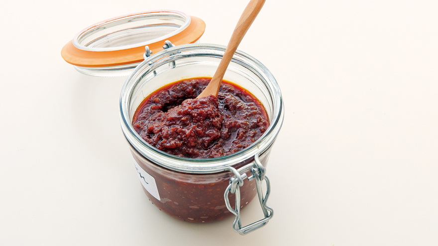 フツフツとしてきたら弱火にし、焦がさないように時々混ぜながら、ぽってりとしてくるまで20~30分間煮詰める。