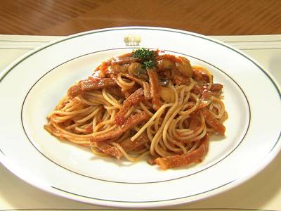 スパゲッティを袋の表示時間通りにゆで、冷水でしめたあと、冷蔵庫で一晩おく。