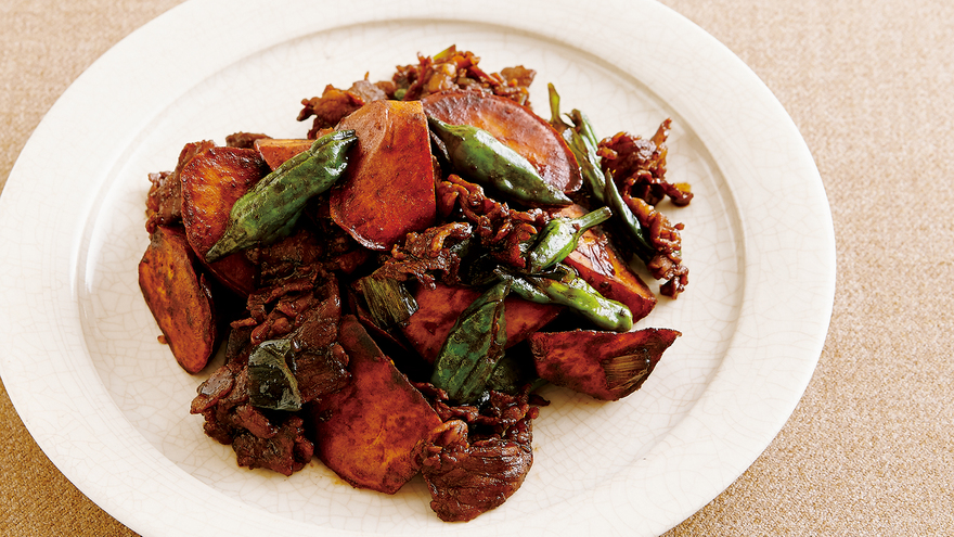 さつまいもと豚肉の甘辛炒め