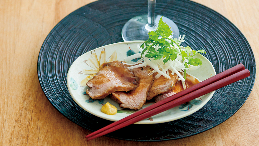 フライパンにサラダ油少々を熱し、強火で豚肉の表面を焼きつける。裏面も同様に焼き、中火にして7~8分間焼いて八分(ぶ)どおり火を通す。火を止め、豚肉を取り出す。