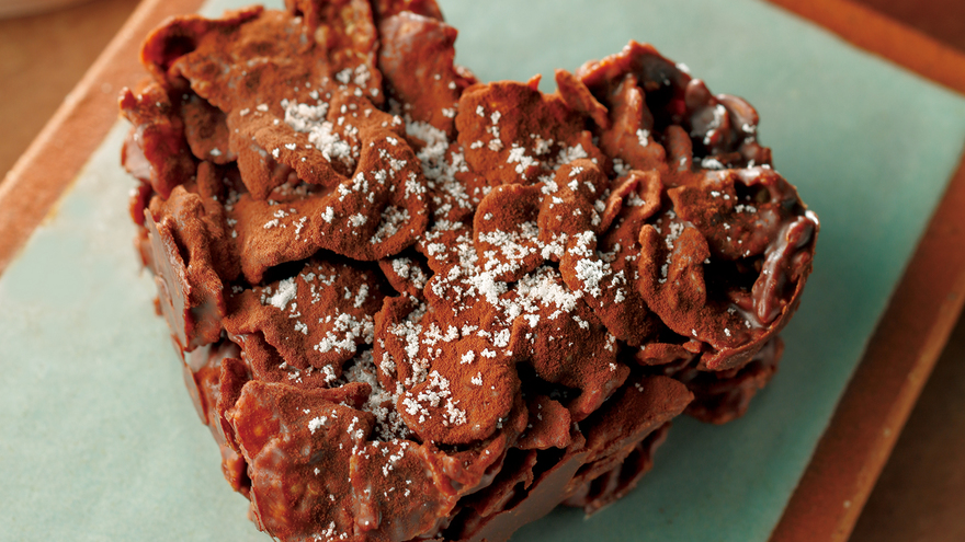 コーンフレークはしけているようならオーブン用の紙を敷いた天板に広げ、100℃のオーブンで約15分間焼くかフライパンでいってパリパリにする。