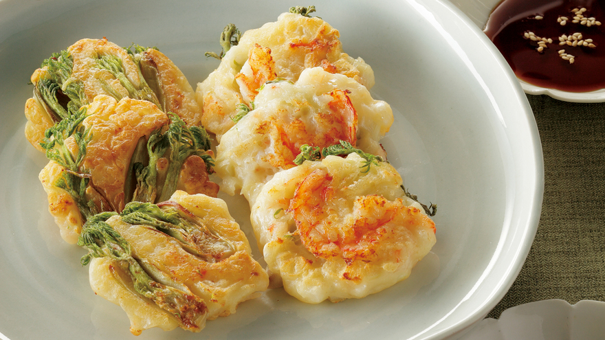 たらの芽とえびのチヂミ