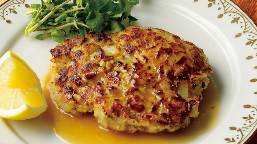 大きめのフライパンで2コずつ焼く。フライパンにサラダ油大さじ1を熱し、4の肉ダネを手で押さえつけるようにして広げて入れる。