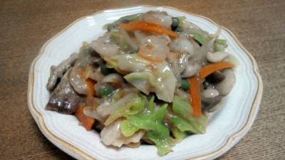 定番料理の八宝菜を豚こまでつくります。牛乳を加えてコクを出すのが、建太郎流。