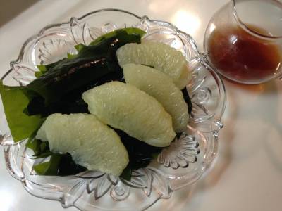 グレープフルーツの爽やかな酸味と赤ワインビネガーのきりっとした酸味、二種の酸味を生かしたシンプルな一品。