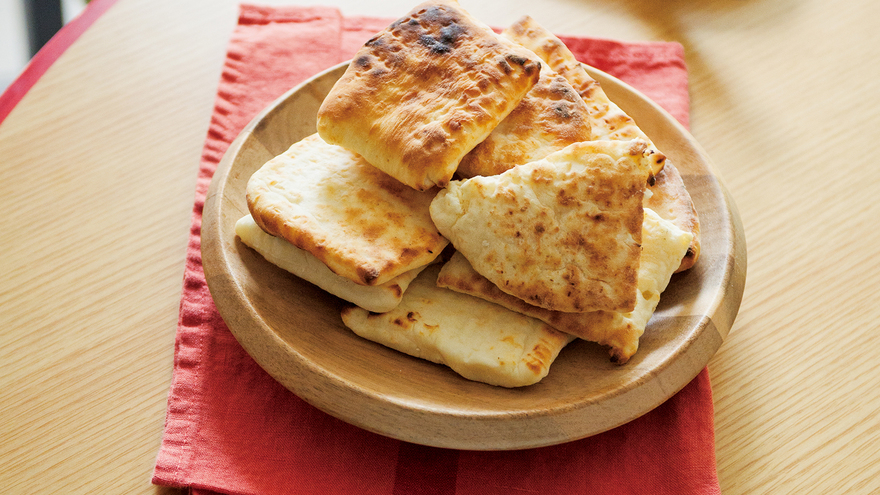焼き網を使って直火(じかび)で焼くと、香ばしくておいしいですよ!フライパンやオーブントースターで焼いたり、揚げてドーナツにしても。ドーナツにするときは、生地をドーナツ型で抜いて160℃の揚げ油で4~5分間揚げ、たっぷりの砂糖をまぶす。